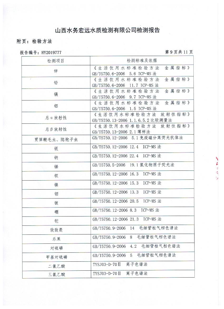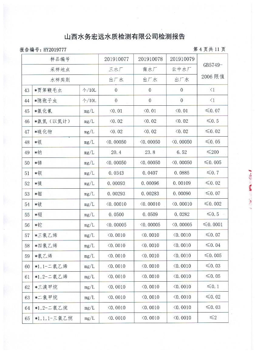 2019年忻州城區(qū)公共供水南水廠、三水廠、云中水廠出廠水106項水質全分析
